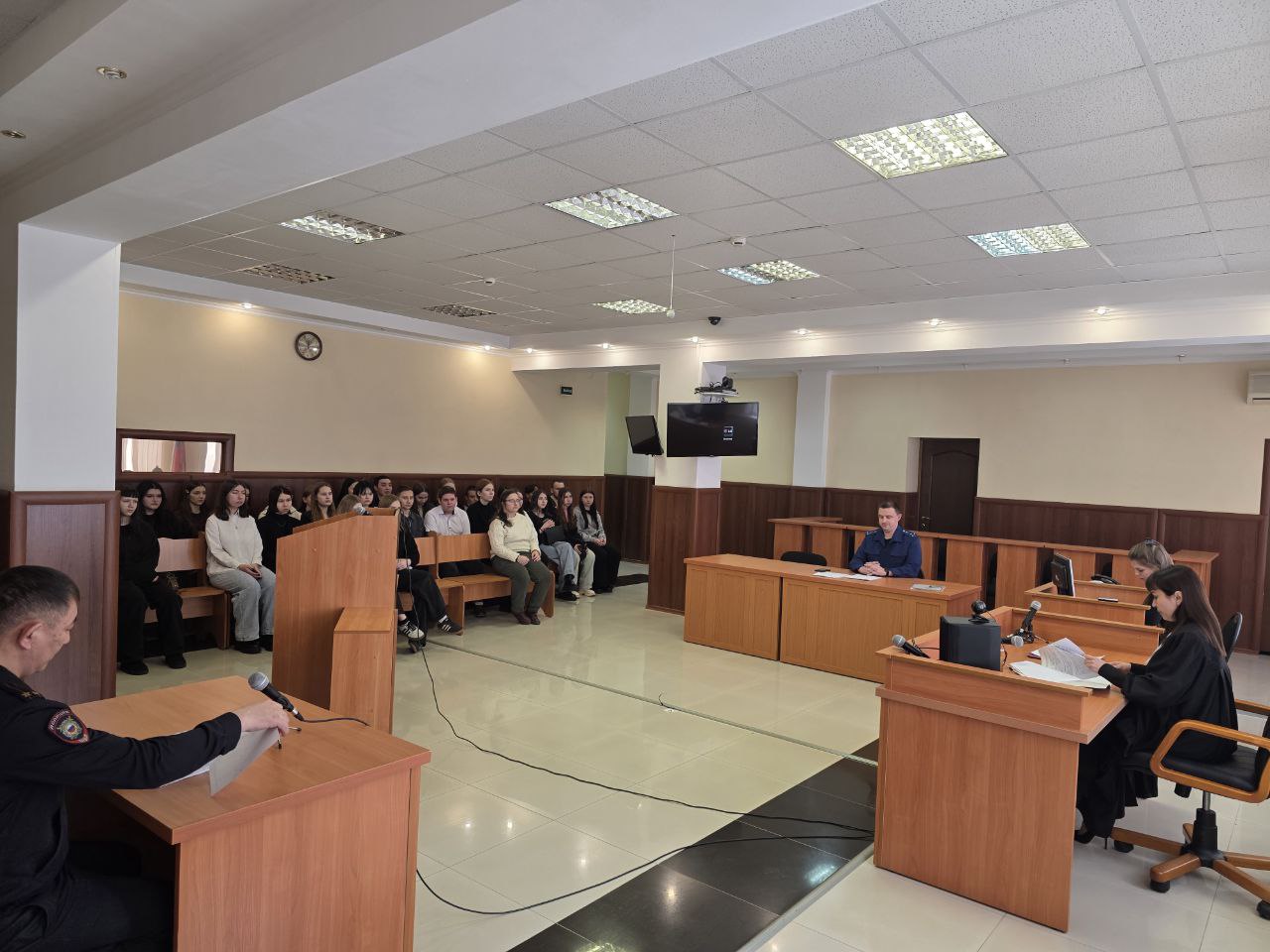 Бугурусланским районным судом Оренбургской области продолжается работа по реализации проекта «Доступно о праве». С целью формирования позитивного отношения к судебной системе, уважительного отношения к закону членами Молодежного совета Башкевич Е.И. и Кукаевой Р.Э. была организована встреча со студентами. Студенты 1 курса 121 группы специальности «Юриспруденция» и студенты 2 курса 22 группы специальности «Юриспруденция» ГАПОУ «Педагогического колледжа» г. Бугуруслана посетили Бугурусланский районный суд Оренбургской области и с удовольствием поприсутствовали в судебном процессе под председательством судьи Азнабаевой А.Р. об установлении административного надзора и ограничений ответчику. После рассмотрения дела судья А.Р. Азнабаева ответила студентам на интересующие их вопросы, касающиеся хода ведения судебного заседания. |